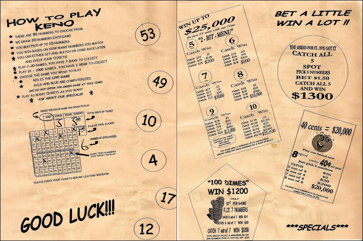 This lets us evaluate all the Keno options in the flier. First, the "2-bit menu":