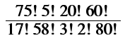 Fortunately, we can cancel quite a few of these terms. For example, (75!)/(80!) = 1/(80*79*78*77*76). And (5!)/(3!) = 5*4. We can keep cancelling until we get: