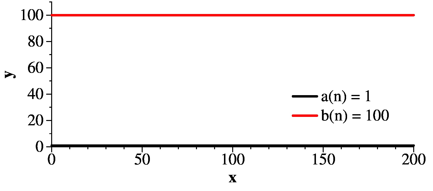 So, in some respects, Big-O is imprecise, because b(n) above is not only O(1), but O(n), O(n2), O(n*log(n)), O(2n) and O(n!). In computer science, when we say that a = O(f(n)), what we really mean is that f(n) is the smallest known function for which a = O(f(n)).
