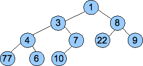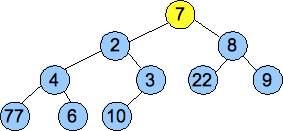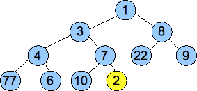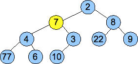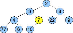 To illustrate the heap working, we'll insert numbers the numbers 7, 4, 22, 1, 7, 8, 9, 6, 3, 10 and 2: