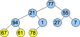 We convert the vector into a tree, as pictured below, and then we call Percolate_Down() on nodes of each successively higher level. These are the nodes pictured in yellow. By the time we get to the root, we have created a valid heap: