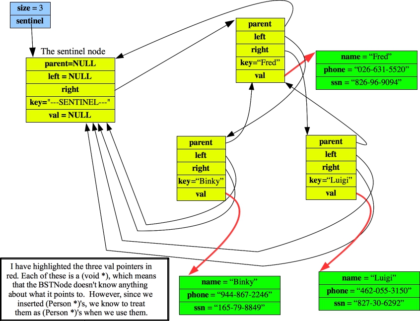 I use the (void *) for flexibility -- it allows me to store any pointer in the val field. The STL does the same thing using templates, and it is superior to a (void *) in most respects. I will teach you templates later in the class. Using a (void *) is an "old school" C trick, which I'm using here for convenience.