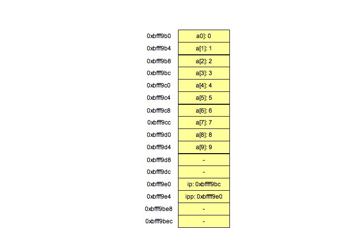 UNIX> p5 0xbffff9b0 0xbffff9e0 0xbffff9e4 0 1 2 21 41 5 6 7 8 9 0xbffff9c0 0xbffff9e0 0xbffff9b0 0x1 UNIX> |