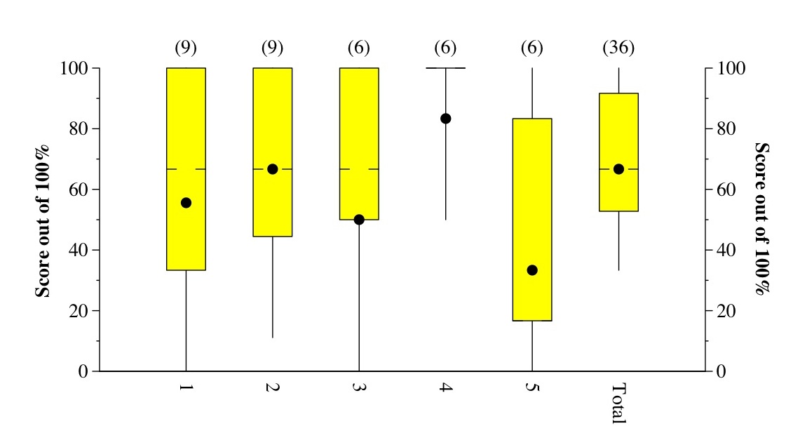 (This is a Tukey Plot, which has lines to the max and min, yellow box denoting
