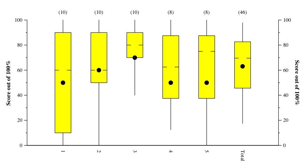 (This is a Tukey Plot, which has lines to the max and min, yellow box denoting