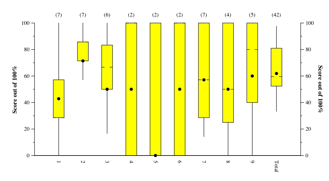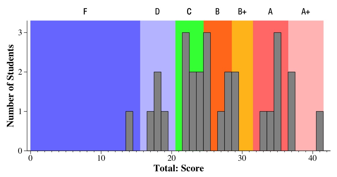 - A+: 37 to 42. One student had a 41, absolutely nailing the exam - well done!