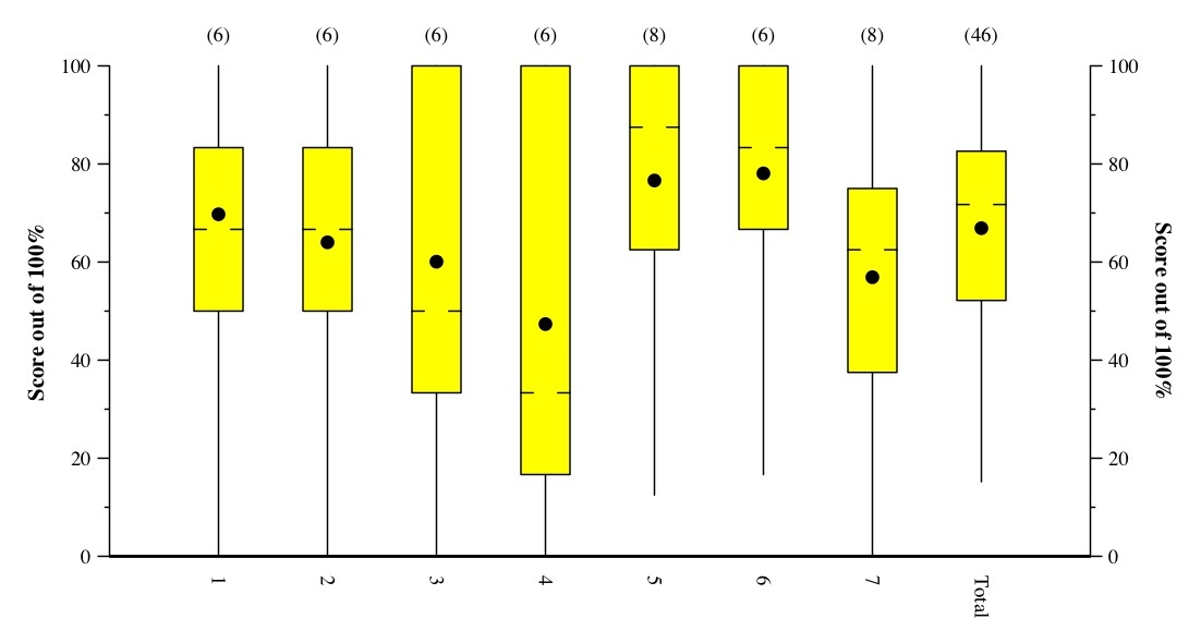 In the "answers and grading", there are histograms of scores for each question.
