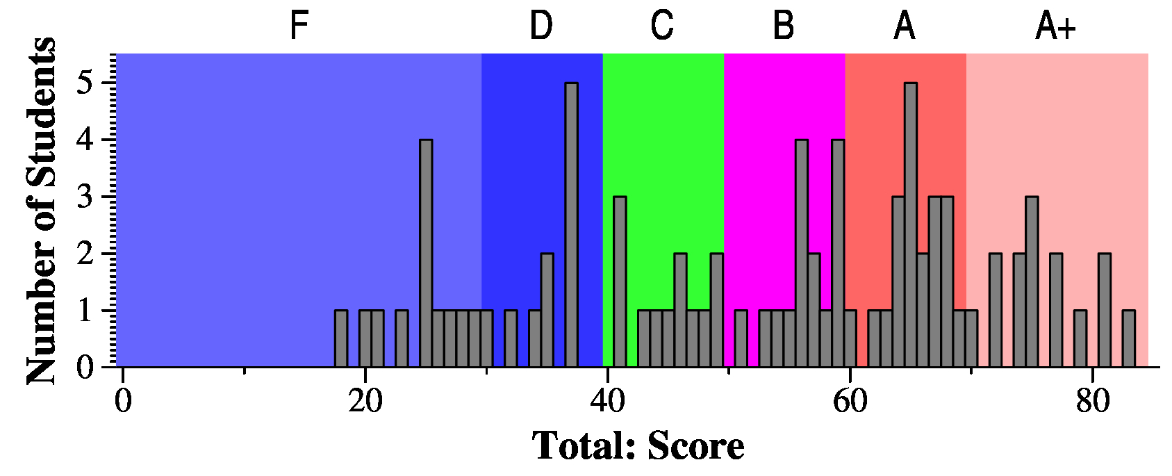 Here is the mapping of scores to letter grades. I don't put plusses and minuses on