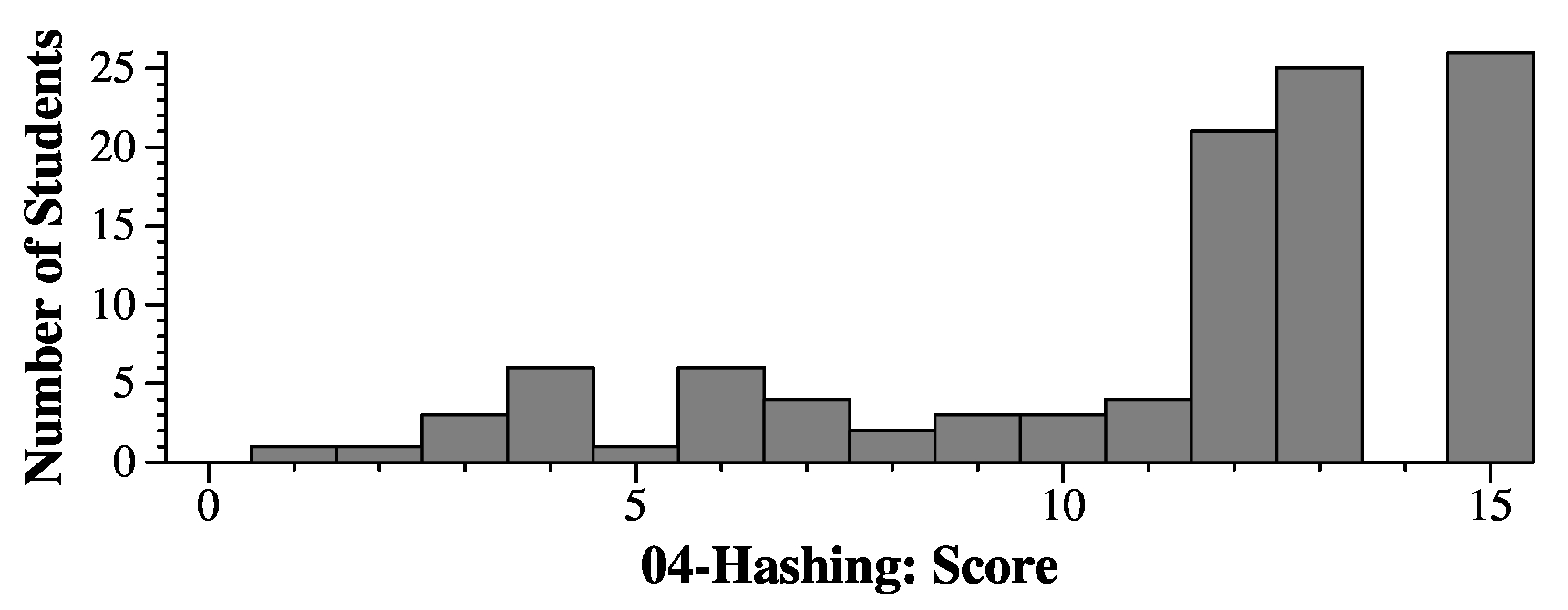 With grading, you typically started with 12 points, and then were deducted. The most common deduction was when you traversed the entire table and didn't exit early when you saw an empty string. That was -4, and I was shocked at how many answers had this problem. Basically, it's omiting the test for "" above. There were similar problems where you exit when you see "", but don't exit when you find the string.