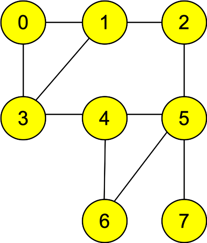 0: 1, 3 1: 0, 2, 3 2: 1, 5 3: 0, 1, 4 4: 3, 5, 6 5: 4, 6, 7 6: 4, 5 7: 5 |