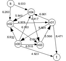 SOURCE s SINK t EDGE n00 t 4.923 EDGE n01 n00 8.824 EDGE n00 n02 6.932 EDGE n00 n03 6.518 EDGE n00 n04 6.183 EDGE n01 t 8.471 EDGE n02 n01 4.929 EDGE n03 n01 5.566 EDGE n01 n04 6.661 EDGE s n02 6.263 EDGE n02 n03 0.741 EDGE n04 n02 5.840 EDGE n04 n03 4.417 EDGE s n04 8.033 |