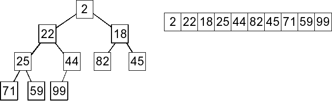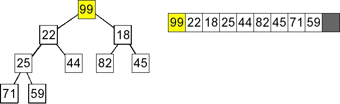 ![]() 4. Percolate Down: Since 45 is the min child, swap 45 and 99. Since 99 has no children, We're done. |