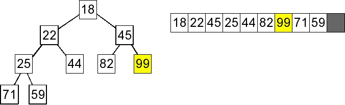 ![]() 3. Percolate Down: Since 18 is the min child, swap 18 and 99. |