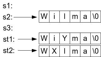 UNIX> q2 s1: WiYma s2: Wilma s3: iYma st1: WiYma st2: WXlma UNIX>If you want to test it yourself, the code is in q2.cpp.