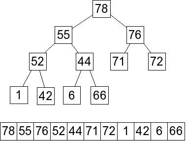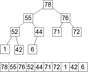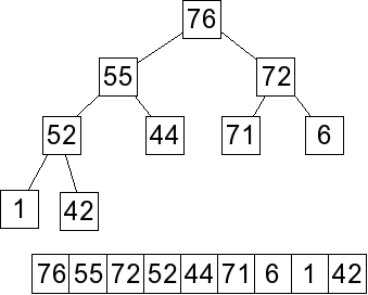 Now we percolate down -- the 6 will be swapped with 76 and 72 to yield the following -- the array
