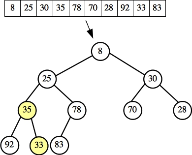 | 2 | Insert 99 (do nothing) | 10, 47, 99, 64, 77, 35, 56, 21 | w |