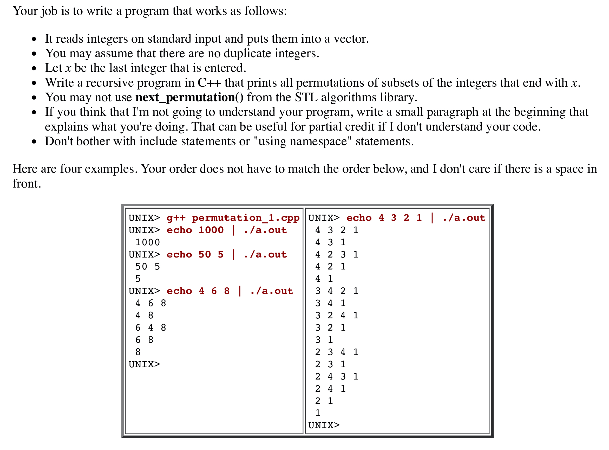 void permute(vector <int> &v, int index, int terminate)