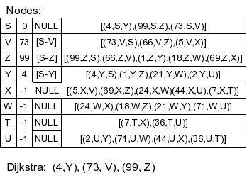 In the first iteration, S is considered, and it puts V, Z and Y on the map:
