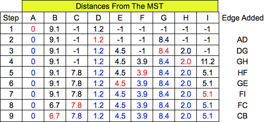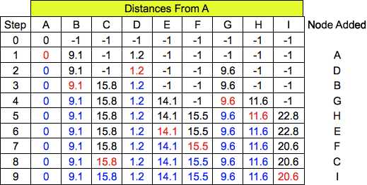 Dijkstra's algorithm -- here are the states at each step: