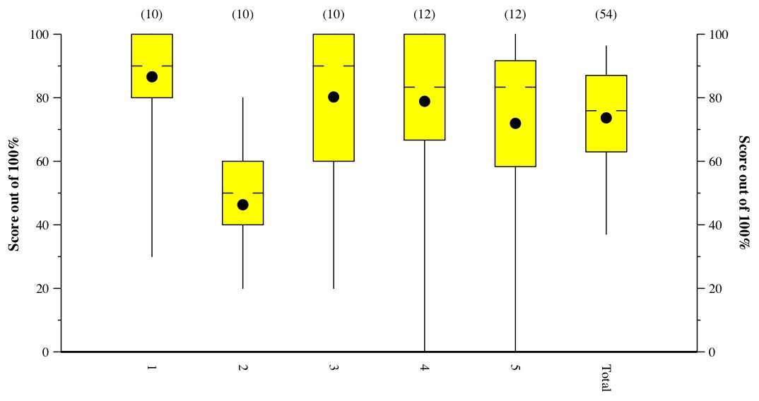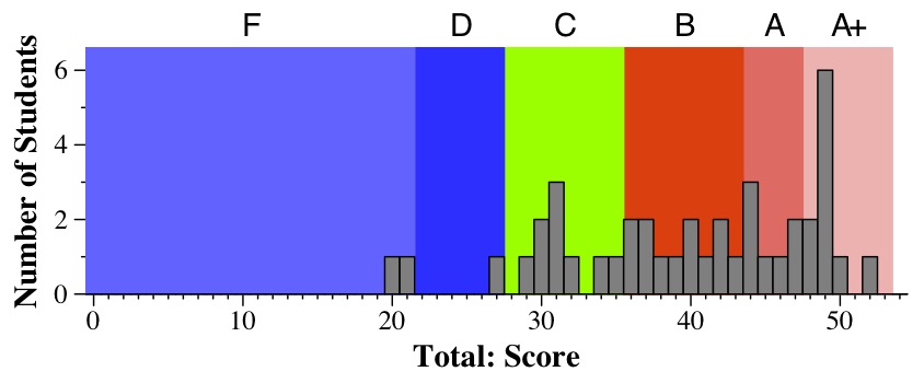 In the answers and grading, there are histograms of scores for each question.