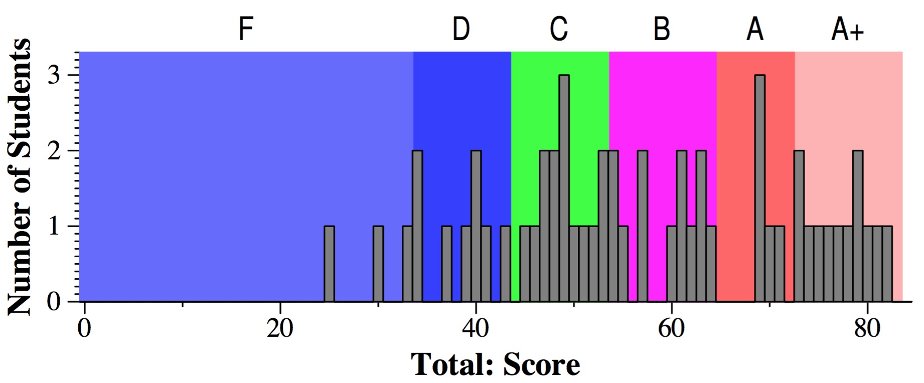 In the answers and grading, there are histograms of scores for each question.