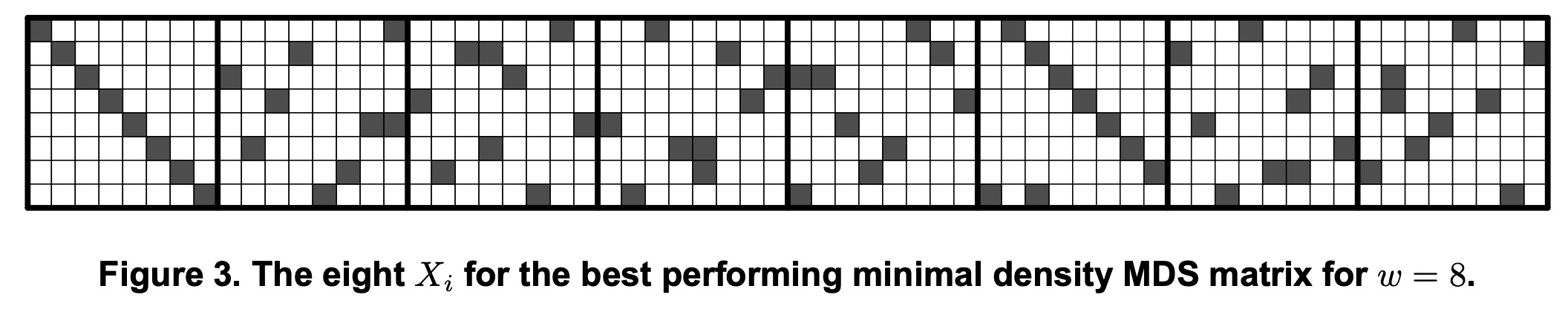 - Paper with the Liberation code, Liber8tion code, Blaum-Roth codes, and proof that the