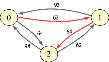 UNIX> ap-flow-fw 5 1 Y Adjacency Matrix: 255 8 41 52 19 44 255 1 11 5 27 44 255 49 60 29 12 108 255 115 53 29 11 29 255 Flow Matrix: 255 44 52 52 52 44 255 44 44 44 53 44 255 52 60 53 44 108 255 115 53 44 52 52 255 UNIX> ap-flow-fw 5 1 H 3B65A77BC185B3A15603EF2268873233 UNIX> ap-flow-d 5 1 H 3B65A77BC185B3A15603EF2268873233 UNIX>BTW, the diagonal elements are always given a weight of 255.