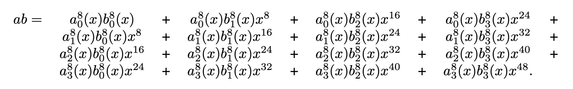 Now, suppose that I multiply two numbers in GF(2^64) and end up with the following before reduction: