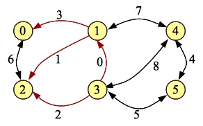 You should note that we had to use the minimum cut to find our answer. Were we to have used our flow calculations processing the augmenting paths, we would have come up with an incorrect answer of 40. Why? Because we added one unit of flow when we processed 0-2-1-3-5, and then three units when we processed 0-2-1-4-5; however, in reality, that last path only added two units of flow. We ignored this fact, because the residual graphs that remained were the same as the correct residual, and that means that we could use it to calculate the correct minimum cut, even though we calculated the incorrect flow. That's pretty cool, isn't it?