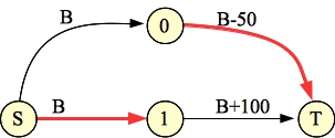 We now know enough to use the the network flow technique from the above general problem formulation to solve the problem. Here's the network flow graph for Example 0: