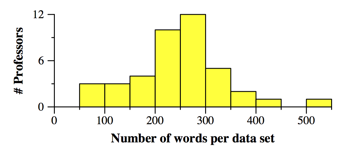 For each paper, I added every word of the paper's title, that was 5 letters or longer, to the professor's set. I didn't do anything smart, like remove plurals. I simply used the words (lower case, of course). So, for example, I had words like "erasure" "checkpointing" and "neuromorphic" that are indicative of my research career. I also had words like "approach", "impact" and "effect", which are less distinctive. The words for each professor is in the directory Words: