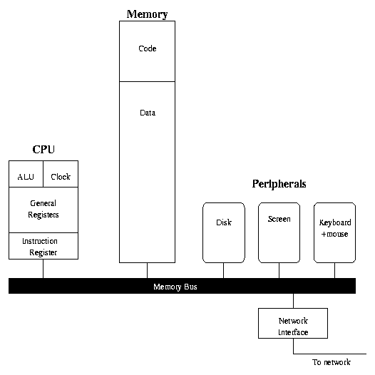 The most notable things are the screen, keyboard, mouse, etc. However, from an architectural point of view, your computer looks like this: