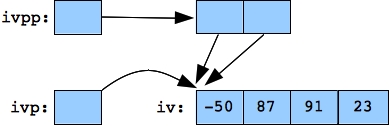 After printing ivpp we set iv[0] to -50. Thus, when we print out ivpp as before, both lines start with -50, since they point to the same thing: