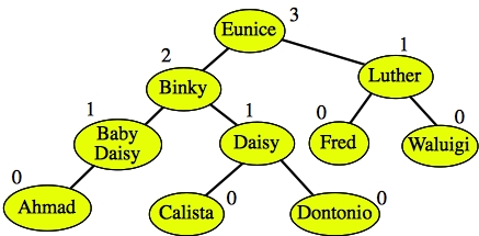 Let's try a more complex example -- deleting Eunice from the following tree: