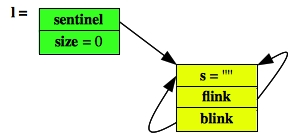 When the constructor for a list is called, it is going to allocate a sentinel node and have its flink and blink pointers point to itself: