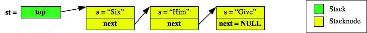 The reason that we have this structure is that it facilitates adding new Stacknode's via Push(), and removing them via Pop(). Let's consider Push(). Here's the code (in stack.cpp):