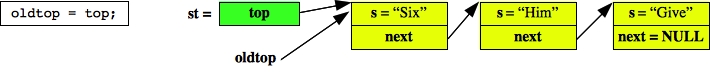 When Push() returns, the variable newnode goes away, and we are left with a stack that has "Now" on top: