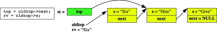 Pop() on the other hand, needs to store the string that is on the first node, remove that node from the stack, and return the stored string. Since Push() called new, Pop() must call delete. Otherwise, our stack implementation will have a memory leak.