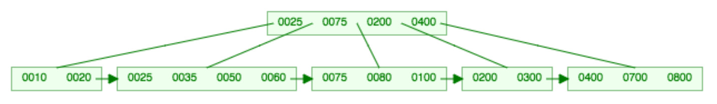 25. B+ Trees. Show what the following degree 5 B+ tree looks like after 30 is inserted into it.