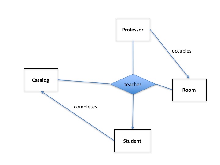 Worst Solution: Showing Section as an entity that has three binary relationships with professor, catalog, and room obscures the relationship among the three entities.