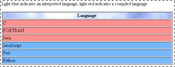 <tr><td bgcolor="#ffa0a0">Java</td></tr>