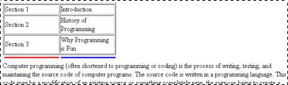 a table, use the table element. To define rows within the table, use the tr (table row) element. To define cells within a row,