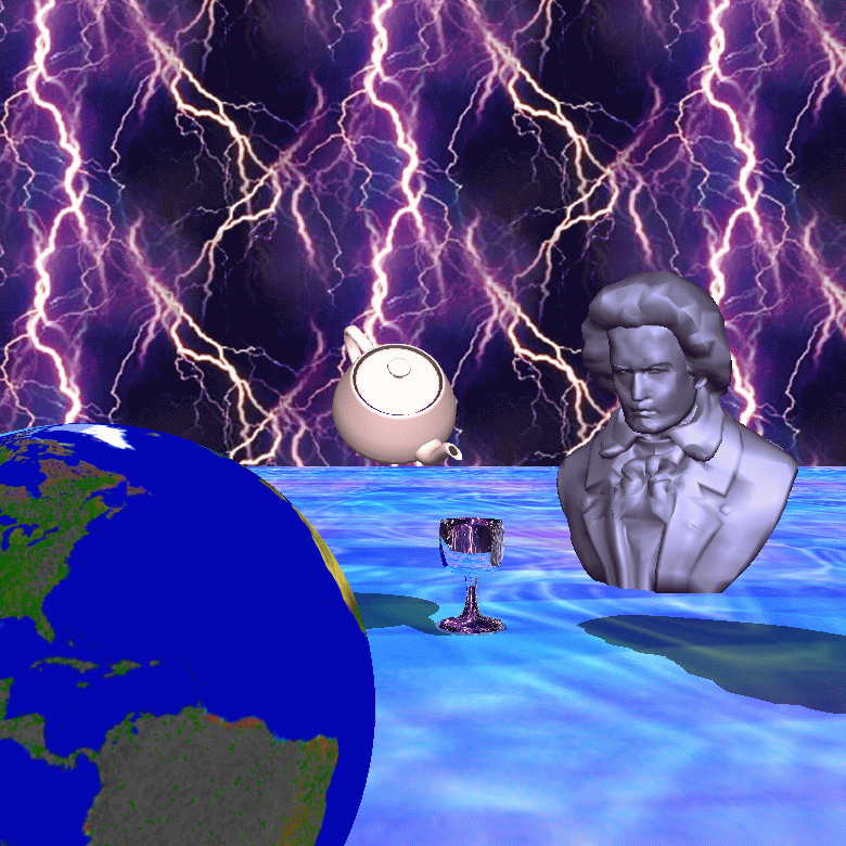 textures, as well as scene graph and animation. The globe floating in space is