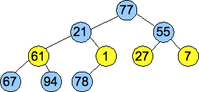 We convert the vector into a tree, as pictured below, and then we call Percolate_Down() on nodes of each successively higher level. These are the nodes pictured in yellow. By the time we get to the root, we have created a valid heap: