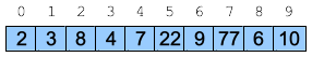 To illustrate the heap working, we'll insert numbers the numbers 7, 4, 22, 1, 7, 8, 9, 6, 3, 10 and 2: