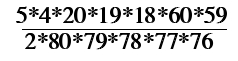 Fortunately, we can cancel quite a few of these terms. For example, (75!)/(80!) = 1/(80*79*78*77*76). And (5!)/(3!) = 5*4. We can keep cancelling until we get: