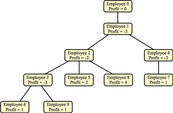 - The manager's profit + Postorder(each employee that reports directly to the manager).