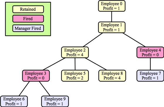 calculate the node's profit after potentially firing employees in subtrees, or even