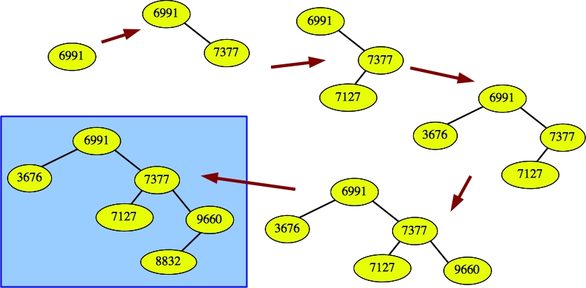Grading: 2 points for the definition, 2 points for labeling the tree so that it matches the definition, 2 points for the insertion.