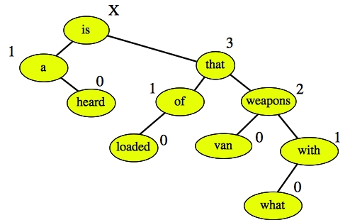 When we insert "what", we traverse each node on the path from "what" to the root, readjust the height if necessary and check the balance condition. When we do this, we see that "is" is not balanced: